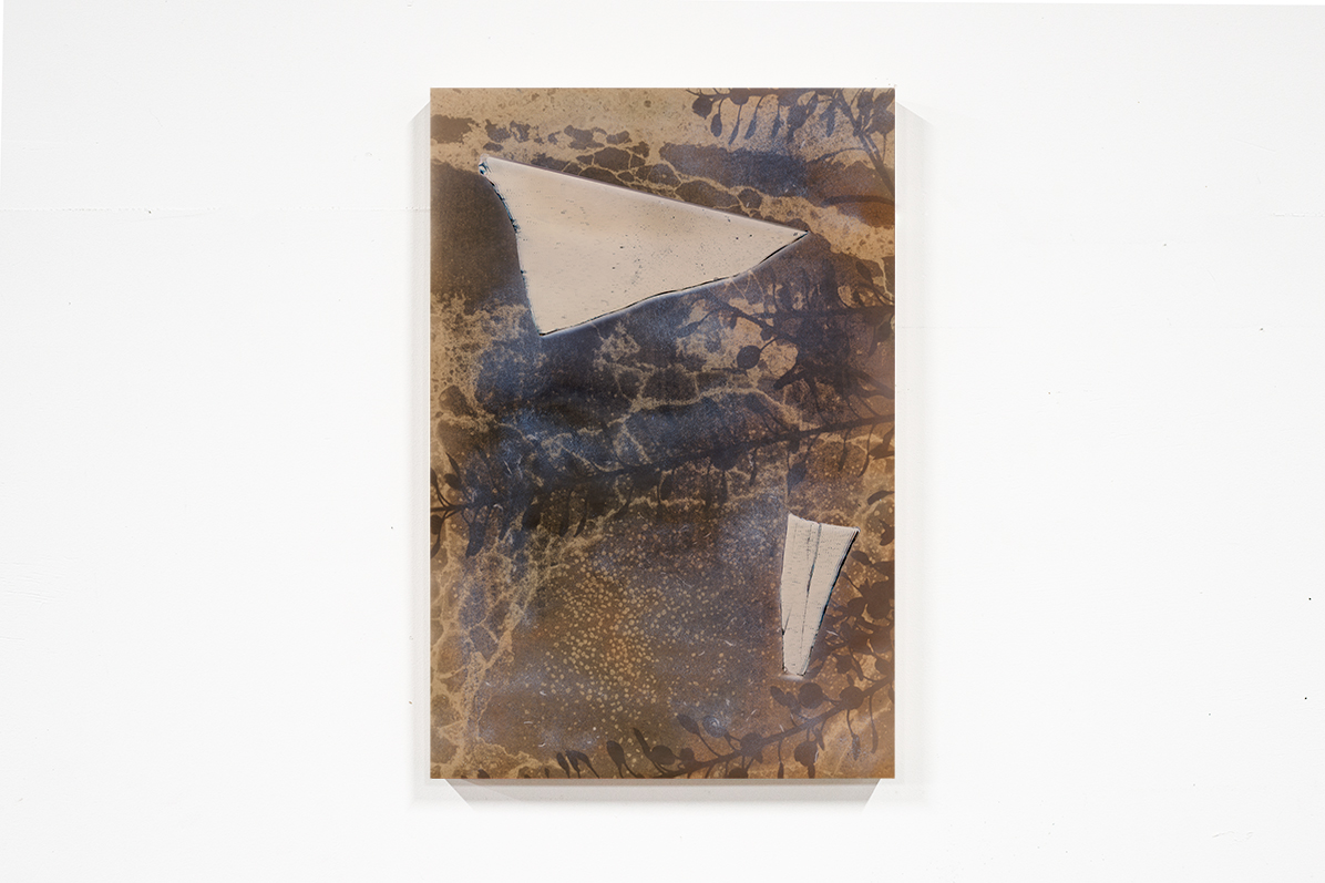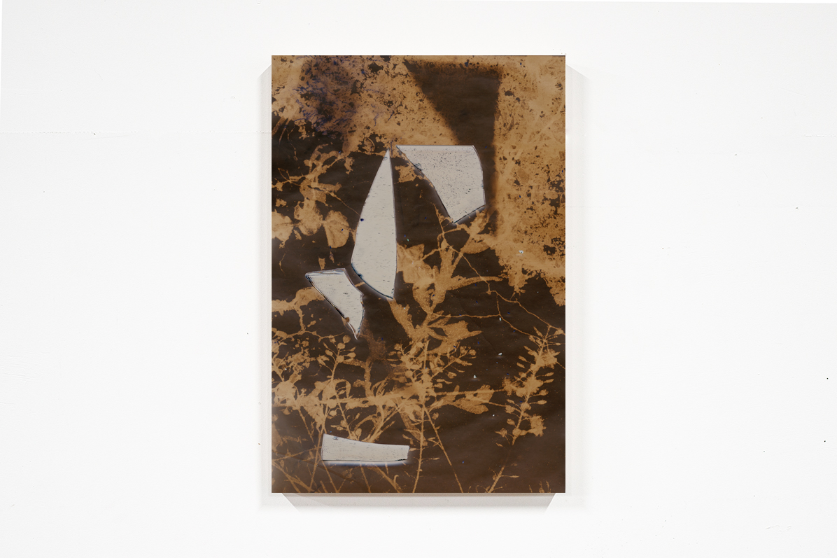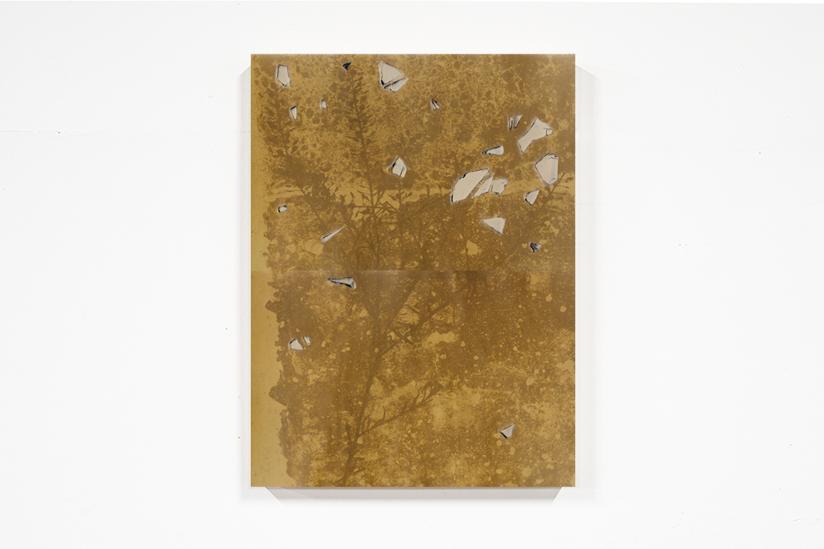 水彩紙にサイアノタイプ、レーザー彫刻、市販薬、シートミラー